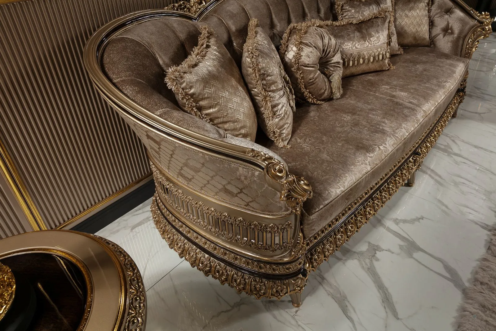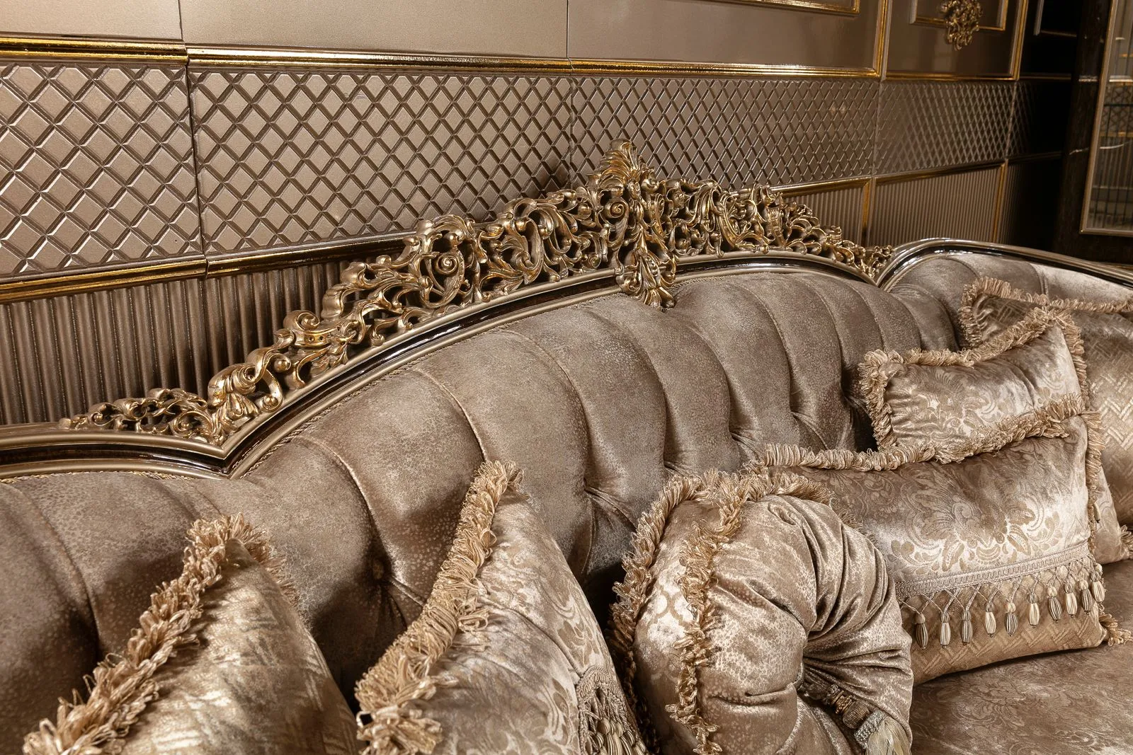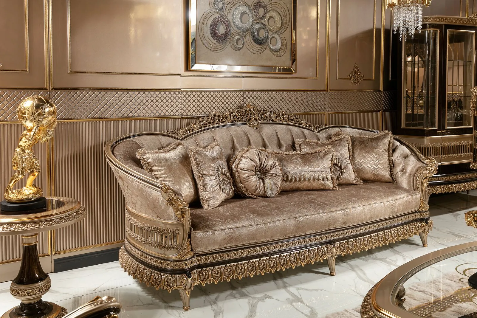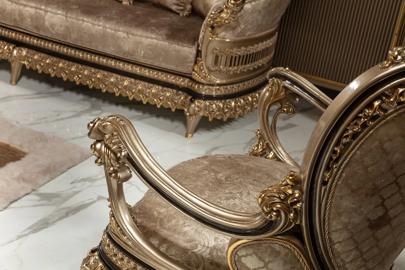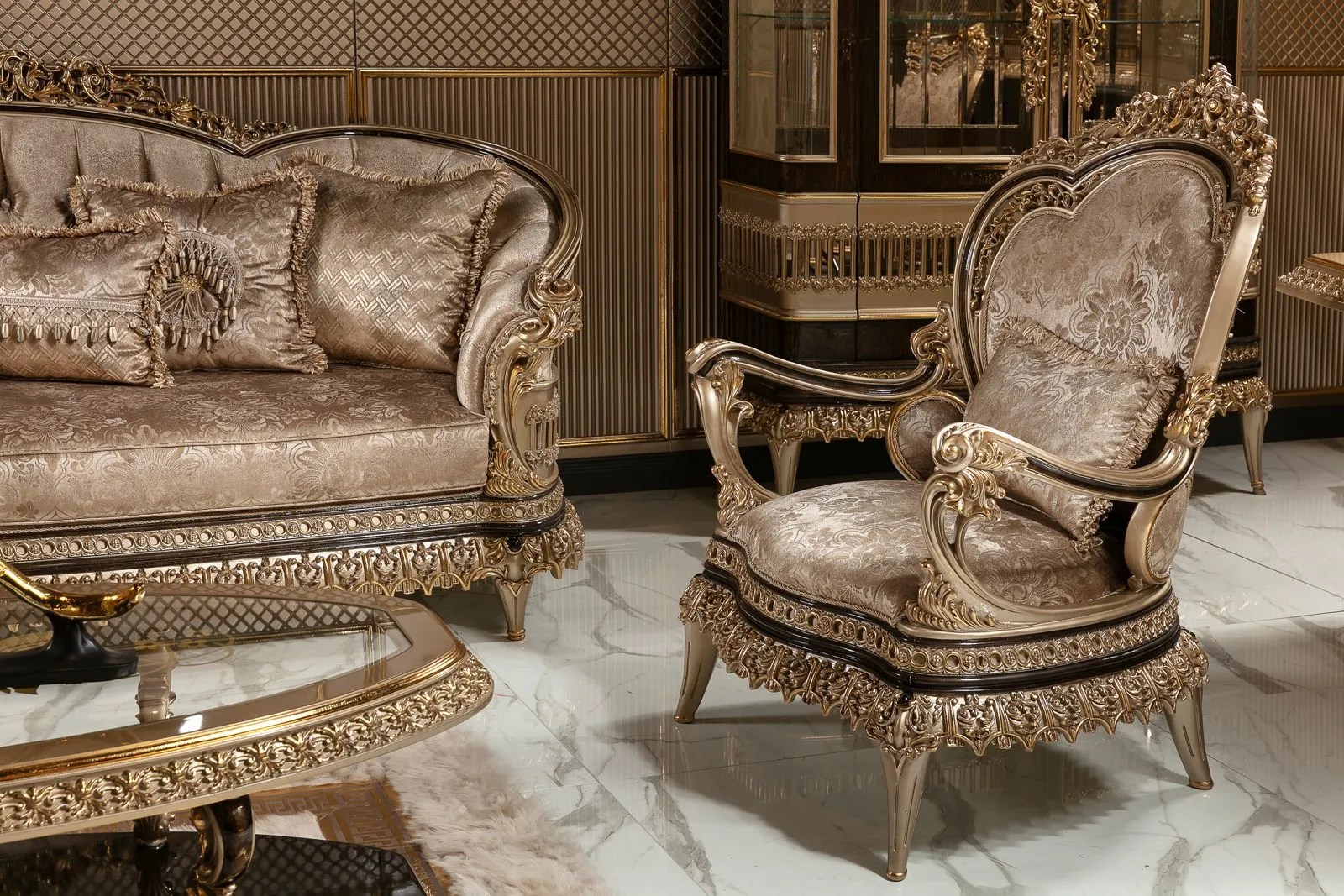 Asaletin ve lüksün sembolü olan Empire Koltuk Takımı, evinize zamansız bir ihtişam getiriyor. Her oturumda size kraliyet rahatlığını sunan bu takım, evinizin baş tacı olacak.