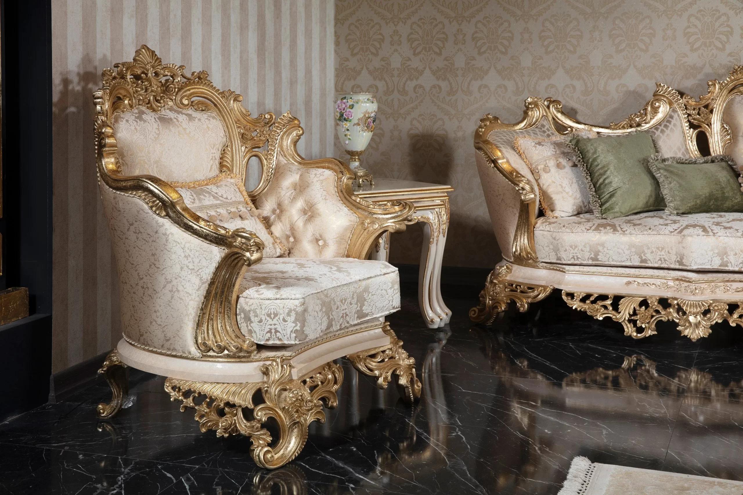 Salonunda hem zamansız bir şıklık hem de kraliyet ihtişamı arayanlar için İmparator Krem Koltuk Takımı, zarafet ve konforu bir arada sunarak, her anınıza prestij katacak.