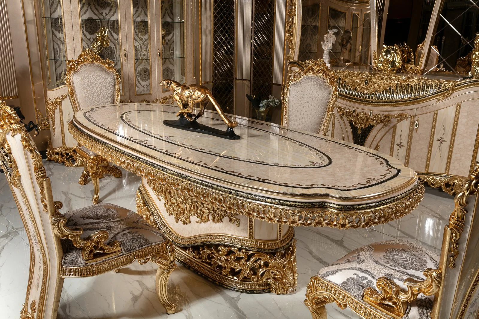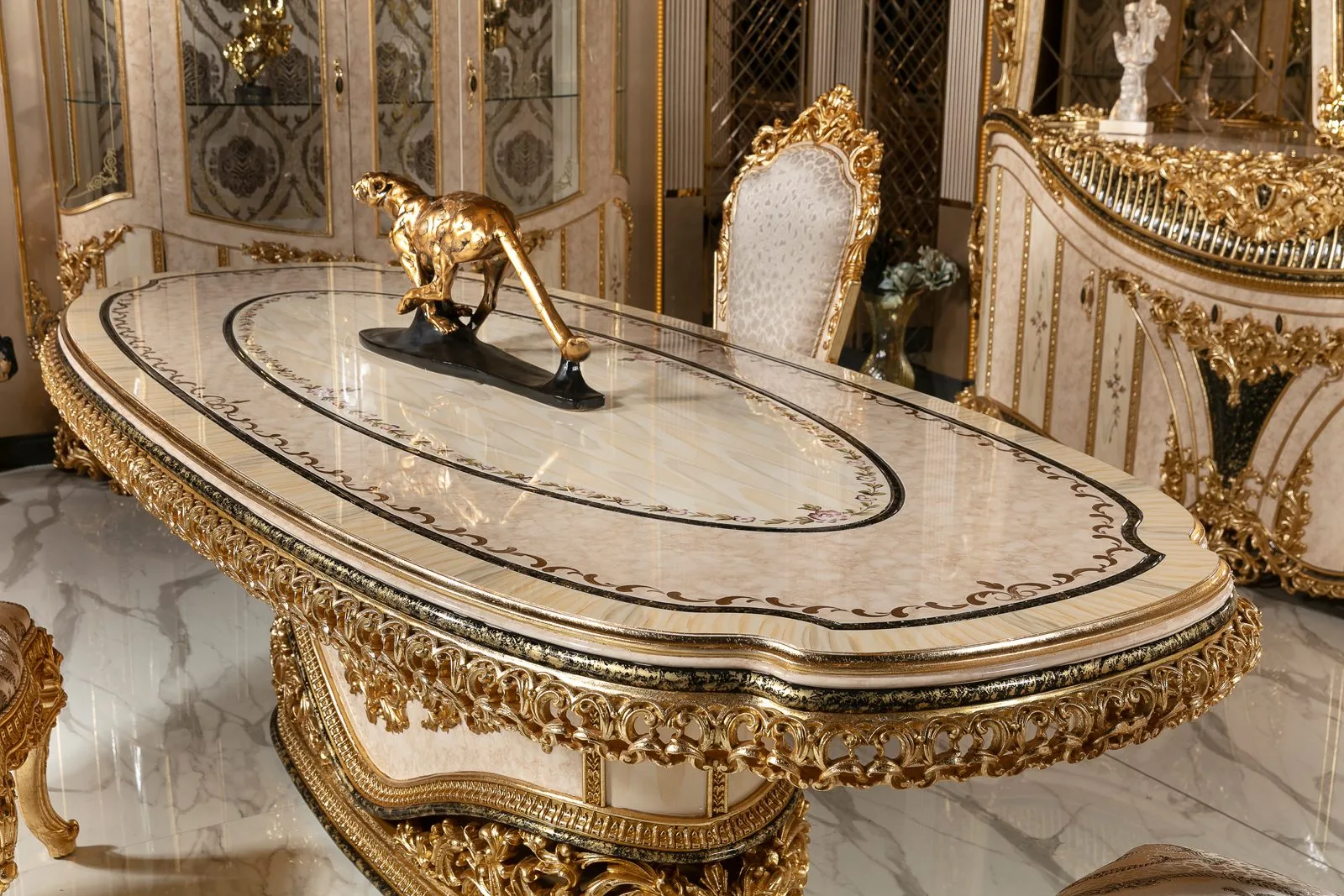 Eğer yemek odanızda kraliyet ihtişamı ve zarafeti yaşatmak istiyorsanız, Royal Yemek Odası Takımı tam size göre! Sofralarınızda lüks ve konforun keyfini çıkarın.