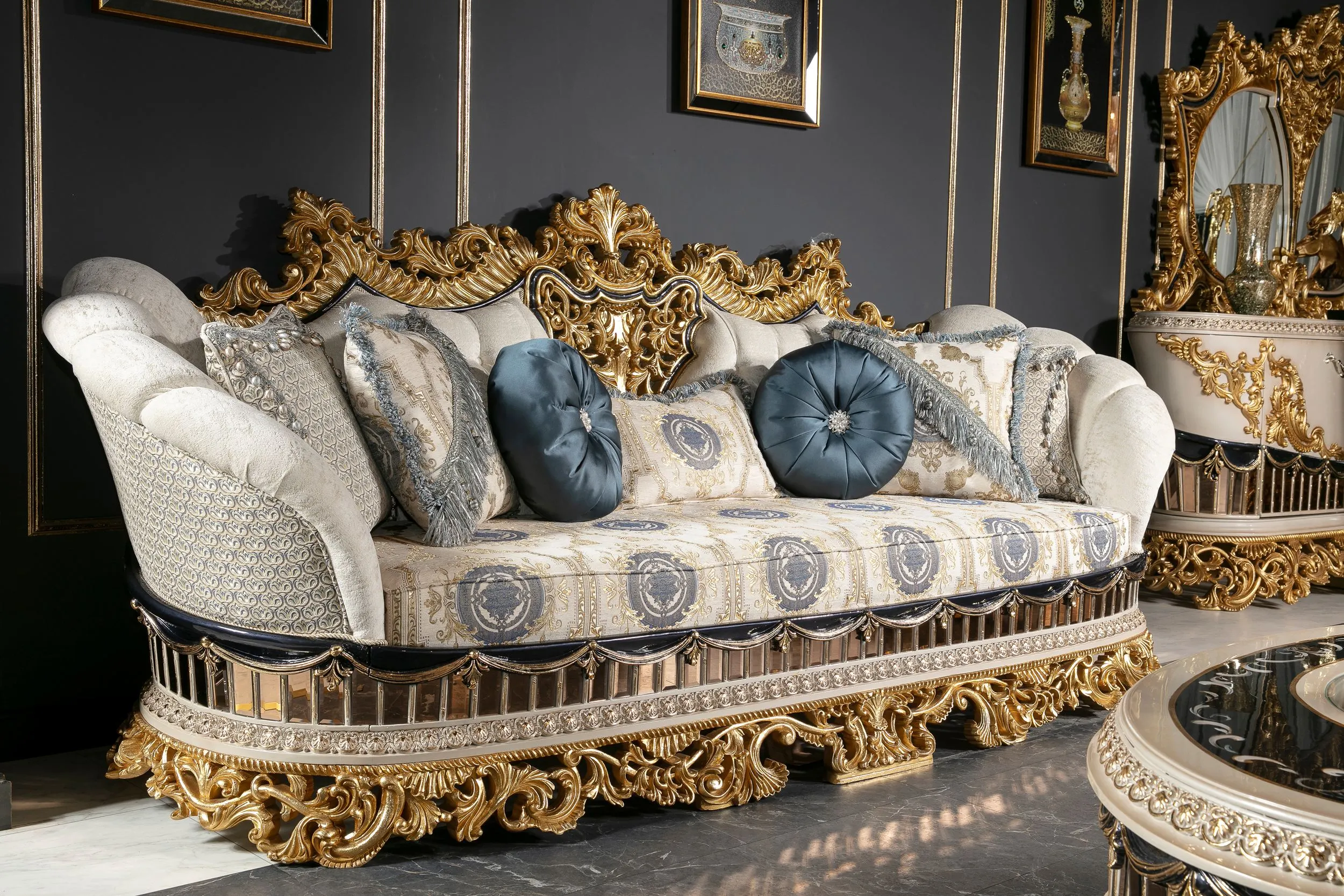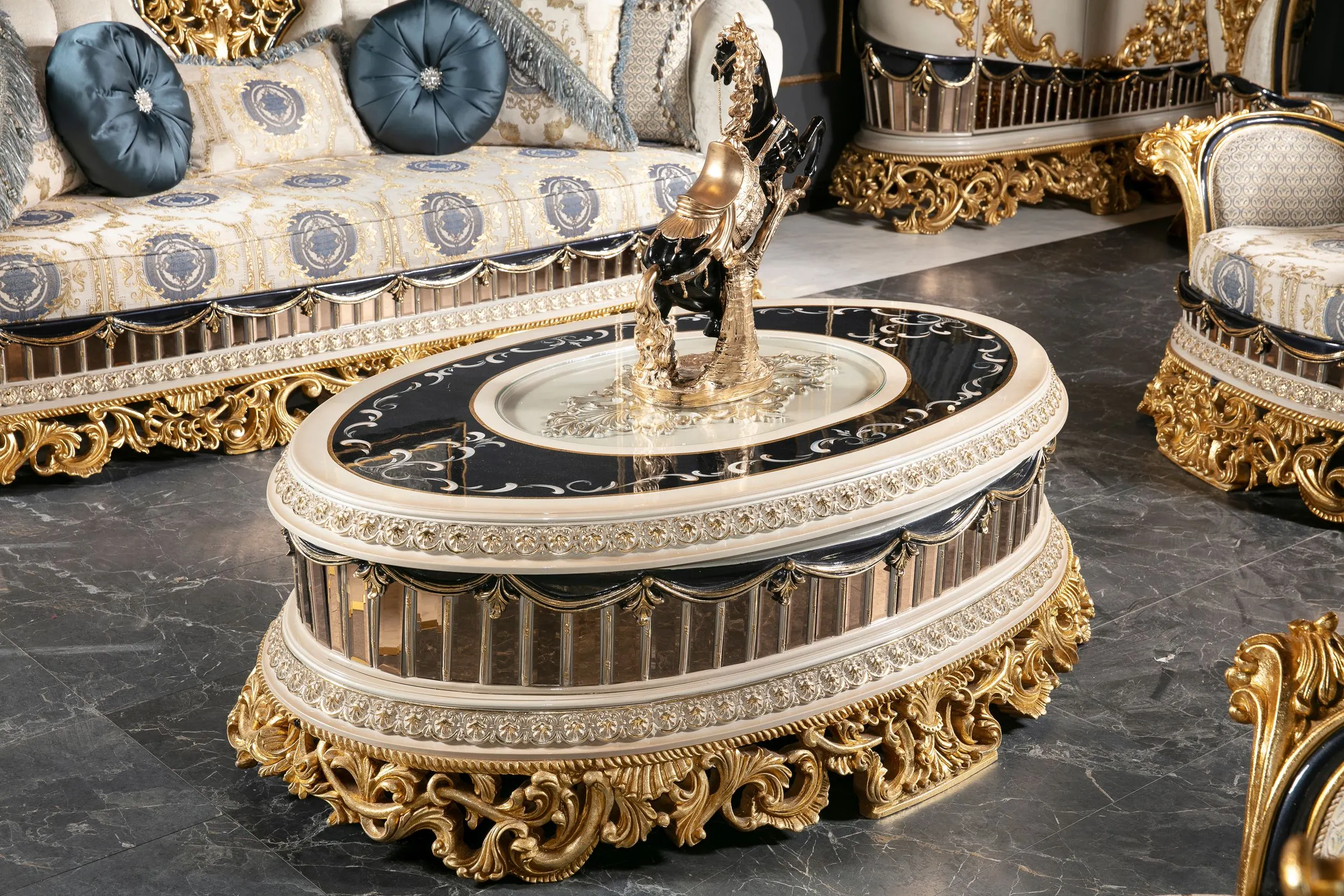 Eğer sofralarınıza modern bir dokunuş ve mavinin ferahlatıcı etkisini katmak istiyorsanız, Tac Mahal Mavi Yemek Odası Takımı tam size göre! Lüks bir ortamda keyifli yemekler yemenin tadını çıkarın.